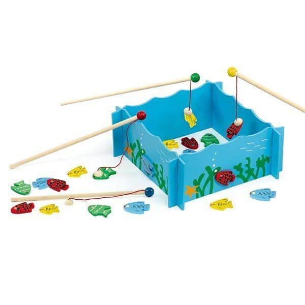 המשחק כולל בריכת לדיג, 4 חכות מגנטיות ו20 דגים עם מספר המודפס עליהם. למשחק מהנה ביחד.