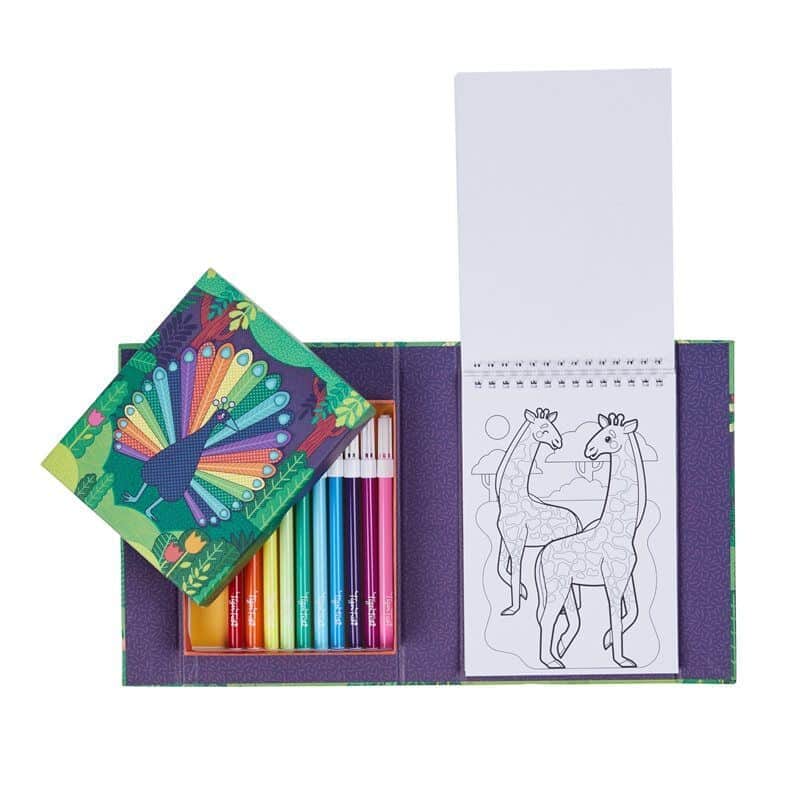 בערכה: 10 טושים, 24 דפי צביעה, קופסת אחסון