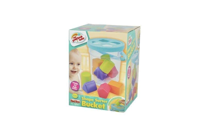 בתוך הדלי 12 צורות הנדסיות בצבעים שונים ובולטים להשחלה בחורים המתאימים