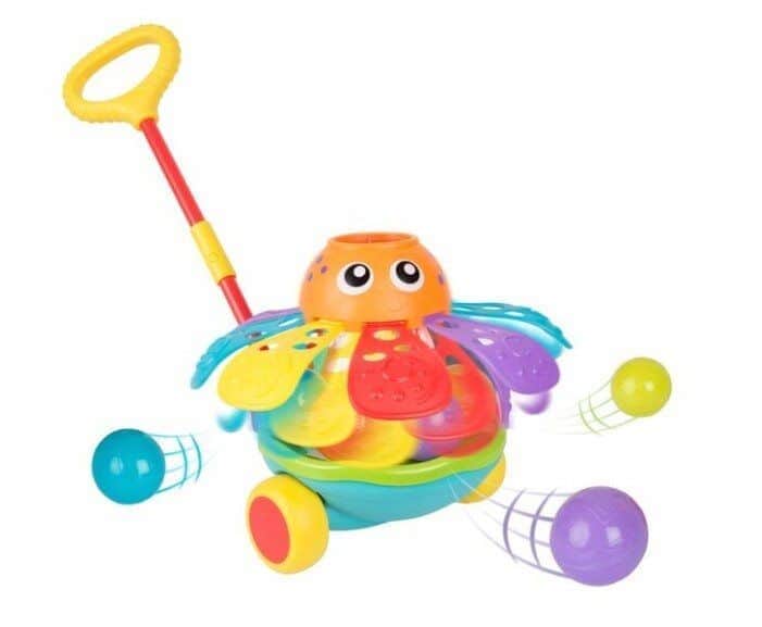 בנוסף, מצורפים כדורים צבעוניים הקופצים מההליכון בזמן שהפעוט דוחף אותו