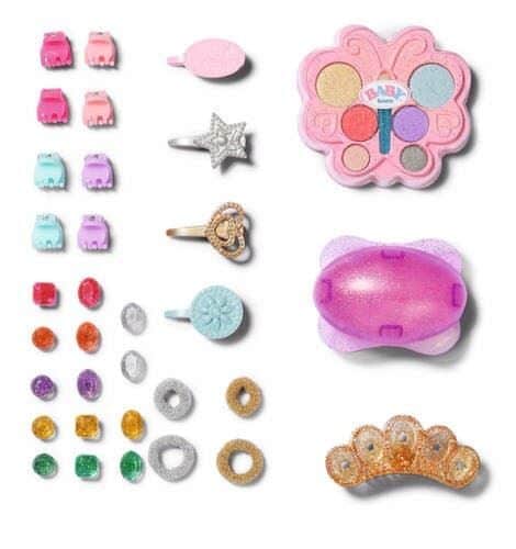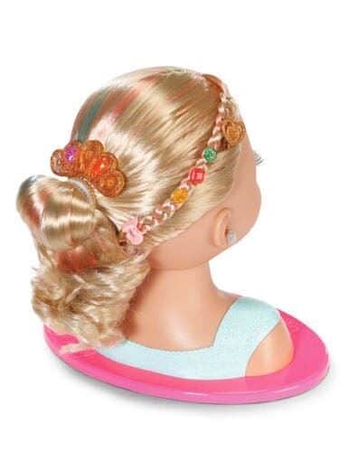 איפור, סטיילינג, עיצוב שיער … הגיע הזמן להיות יצירתיים! הסטייליסטים הצעירים יוכלו להתנסות בשלל עיצובי שיער ואיפור טרנדי, בתום העיצוב יוכלו להסיר את האיפור עם מגבונים ולפרק את התסרוקת. ראש הבובה של נסיכה מגיע עם אביזרים שונים: סט איפור בצורת פרפר, מברשת לשיער, 8 קליפסים קטנים, סיכת כתר, 4 סיכות תיק תק, 4 גומיות, ואבני חן צבעוניות שיוכלו לשמש כעגילים או כקישוט לחולצה של הנסיכה המהממת. הדגם מעודד את הילדים להתנסות עם צבעים, מגביר את הדימיון ותומך בכישורים המוטורים. לא נדרשות סוללות.