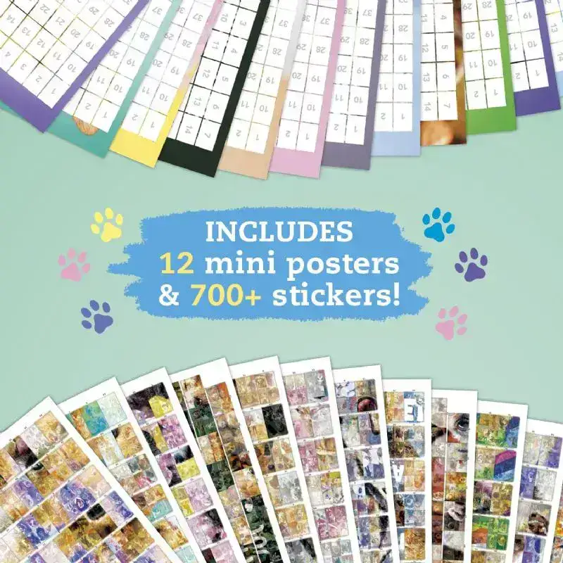 מאות מדבקות עם צילומי כלבלבים ליצירת 12 מיני פוסטרים.