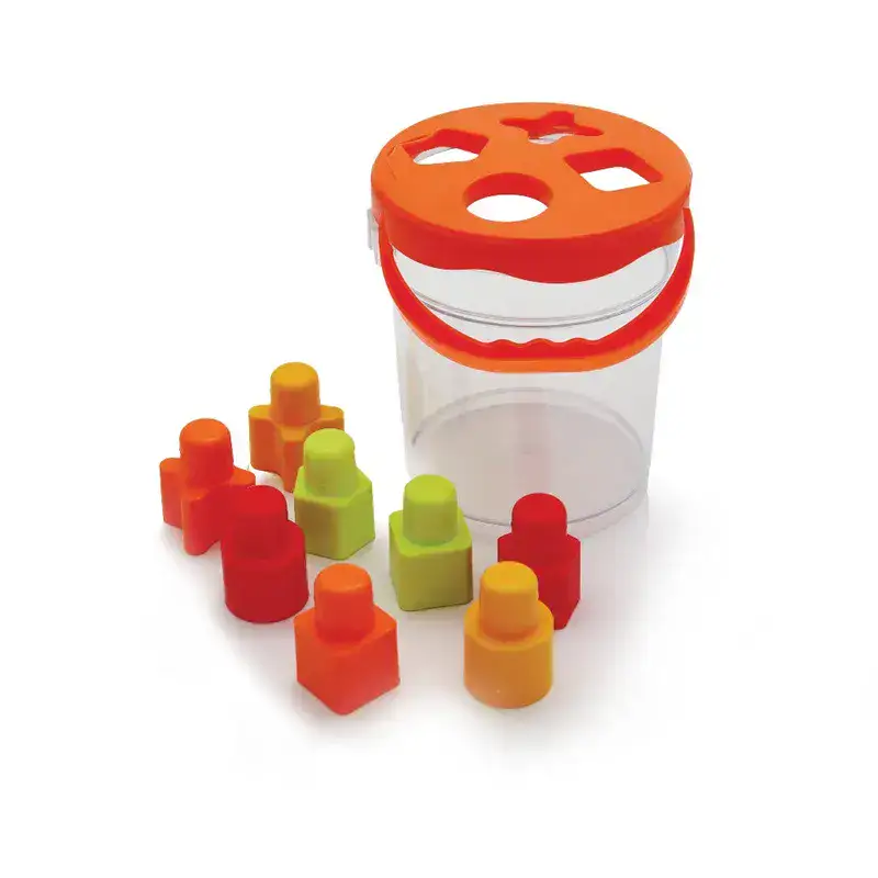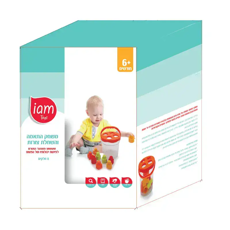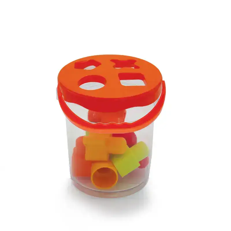 דלי התאם צורה מגיע עם 8 צורות צבעוניות להשחלה. הדלי שקוף קל לפתיחה ועם ידית נשיאה. צעצוע התפתחות המתאים מגיל 6 חודשים +