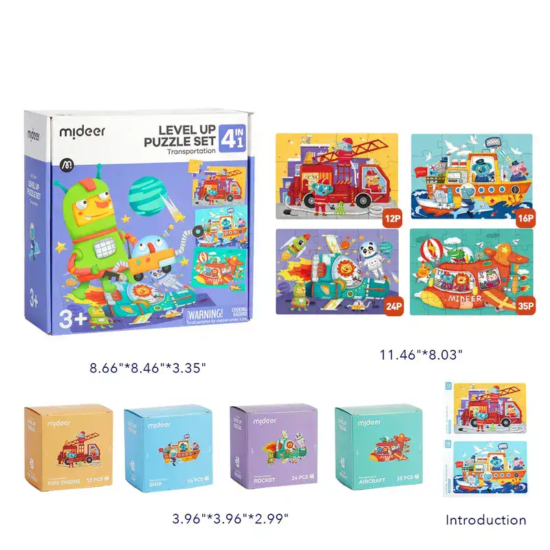 במארז 4 פאזלים: 12 חלקים, 16 חלקים, 24 חלקים, 35 חלקים