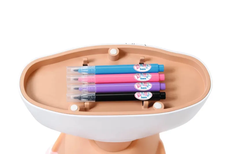 עם ראש הבובה האומנותי של בייבי בורן אין גבולות לדמיון וליצירתיות שלכם! ניתן לאפר ולצבוע את ראש העיצוב בגודל 22 ס"מ עם הטושים הכלולים והשבלונה הנלווית. אבל זה לא הכל: ניתן לצבוע גם את החולצה עם הטושים הצבעוניים ולעצב באופן אישי עם 10 סיכות בצבע פסטל. אם אתם לא מציירים עם הטושים, אפשר לאחסן אותם בתוך הדגם. גולת הכותרת היא כמובן השיער הוורוד הארוך העשוי ניילון איכותי. עם האביזרים הנכונים תוכלו ליצור את התסרוקות המגניבות ביותר. ניתן להשתמש בסיכות על רצועת השיער וגם על החולצה. הדגם כולל: מסרק, 4 טושים, שבלונה, סרט, 2 גומיות, 4 קליפסים ו-10 סיכות.