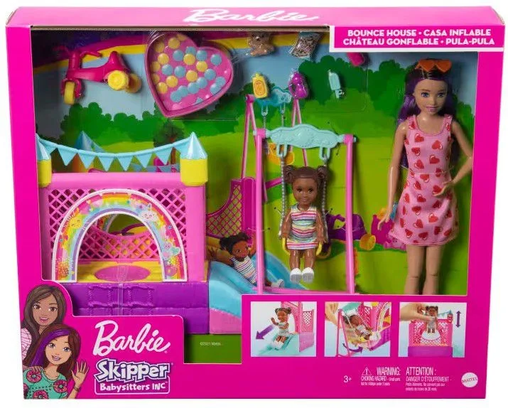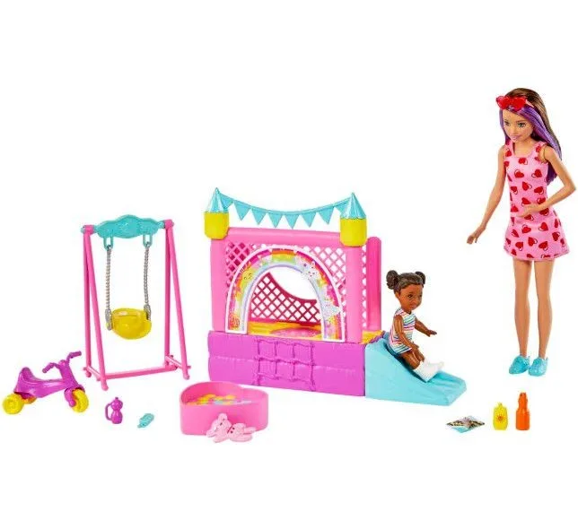 מארז גן שעשועים כולל בובת ברבי סקיפר ובובת ילדה .