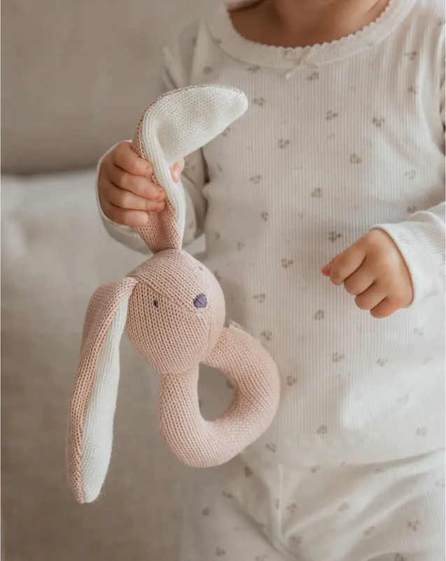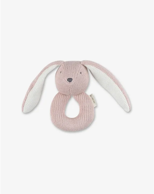 רעשן פעמון סרוג ארנב ורוד