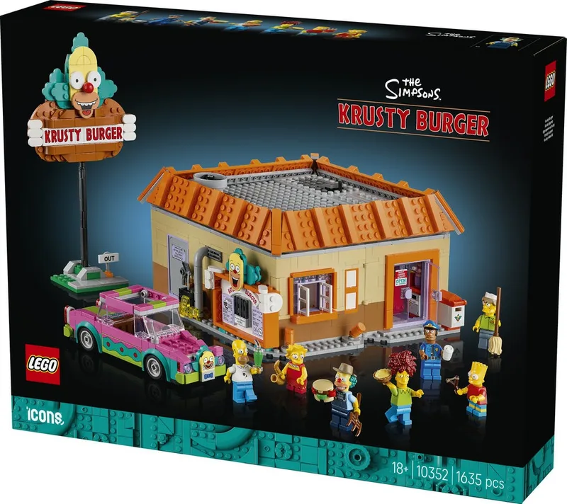 צרו מחדש את מסעדת המזון המהיר האגדית של ספרינגפילד עם ערכת העיצוב לבית ולמשרד (10352) למבוגרים מסעדת המבורגר של Krusty מסדרת LEGO Icons®. צרו דגם מפורט של המזללת של הומר, כולל מטבח, פינת אוכל, שירותים ומסלול טייק-אוויי למכוניות. הערכה שהיא מוצר חובה לכל חובב של הסדרה The Simpsons כוללת גם שלט של המסעדה Krusty Burger ודגם העתק של המכונית של הליצן של הומר, פלוס המיני-דמויות של הומר, בארט וליסה סימפסון, Krusty החקלאי, Sideshow Bob, Squeaky Voiced Teen ו-Officer Lou. הרימו את הגג וקפלו את הדגם כדי לאפשר גישה מלאה לחלל הפנים המתפקע מפרטים, כולל מטבח עם מכונת גלידה, סיר טיגון עמוק ומתקן באז למזיגת משקה קולה; פינת אוכל עם 7 מקומות ישיבה עם עמדת תבלינים, בור כדורים, דלפק עם קופות רושמות ותפריט תלוי על הקיר; ושירותים עם אסלה, כיור, מראה שבורה ומייבש ידיים. גלו מבחר של ערכות בנייה של LEGO למבוגרים. היישום LEGO Builder כולל גרסה בתלת ממד של הוראות בנייה הכלולות בערכה זו. המבנה The Simpsons™: מסעדת המבורגר של Krusty בערכת בנייה זו בגובה של מעל 23 ס"מ, ברוחב של מעל 24 ס"מ ובעומק של מעל 20 ס"מ.