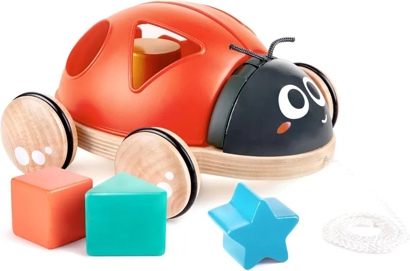 משחק התאמת צורות בסיסיות צבעוניות מעץ. התאימו את הצורות לחיפושית. משחק מהנה במיוחד תוך היכרות עם עולם הצורות.