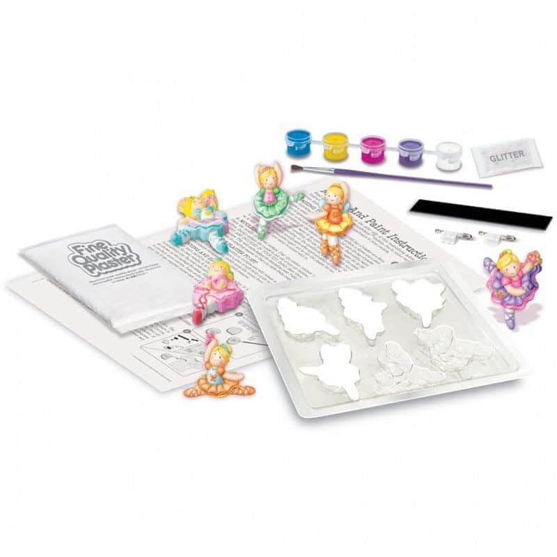 הכינו את המגנטים או הסיכות שלכם על ידי שימוש בתבנית, בגבס, בנצנצים, בצבעים ובמכחול המסופקים בערכה. תכולת הערכה מספיקה ליצירת 6 מגנטים או סיכות.