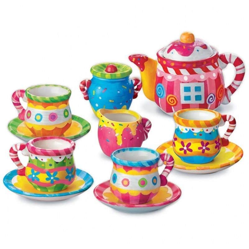צבעו סט כלי תה לפי העיצובים היצירתיים שלכם. ערכו מסיבת תה דימיונית עם הבובות שלכם או השתמשו בסט התה שלכם כקישוט בית מקסים.