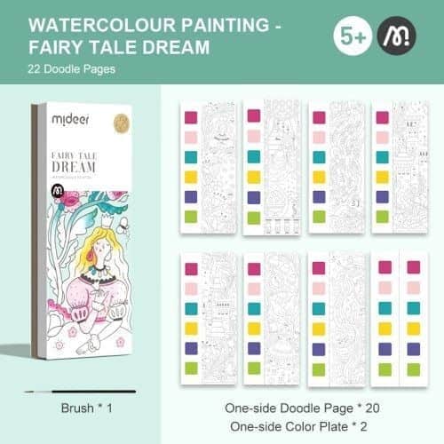 חוברת צביעה ובה פלטת צבעי מים בכל דף!