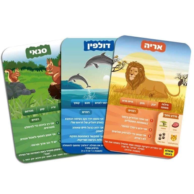 אוהבים חיות? 10 מי יודע הוא משחק ניחושים מושלם! הוא טורף? היא יכולה לעוף? שאלו עד 10 שאלות של כן/לא, והשתמשו בקלפי הרמז. השחקן/ית או הקבוצה שיזכו ב-7 קלפי משחק – הם המנצחים!