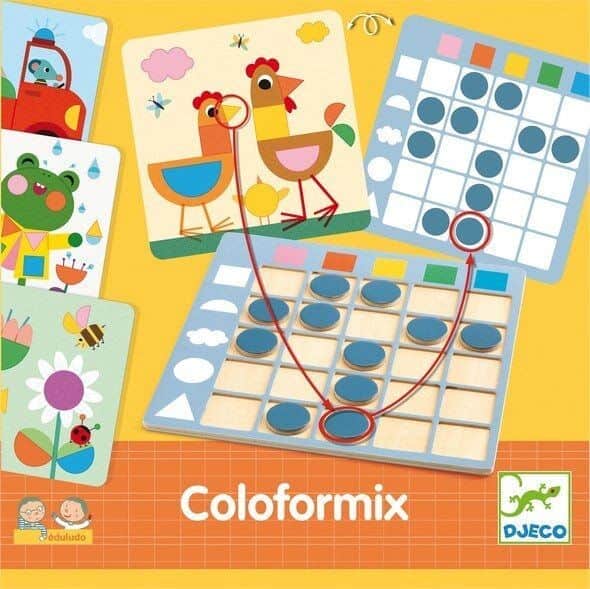 משחק בסגנון "מה במשבצת" מחפשים את הצורה והצבע המתאימה ושמים עיגול במקום הנכון בטבלה. מאחורי כל כרטיס מופיע הפתרון. גם מהנה וגם מלמד.