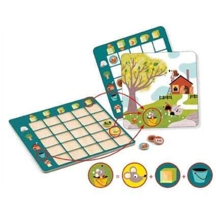 תכולה: 1 לוחעץ 20*20 ס"מ,5 ג'יטונים של חיות, כרטיסים שונים2