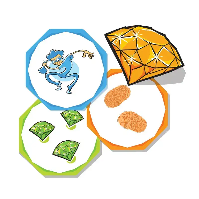 אתם עדים לפריצה בשעת לילה מאוחרת. חבורת גנבים נמצאת במרחק נגיעה מאוסף יהלומים יוקרתי. אז קדימה תפסו אותם על חם! משחק קלפים מהיר שאין בו רגע מנוחה, מפתח את יכולת הריכוז וכושר ההבחנה.
