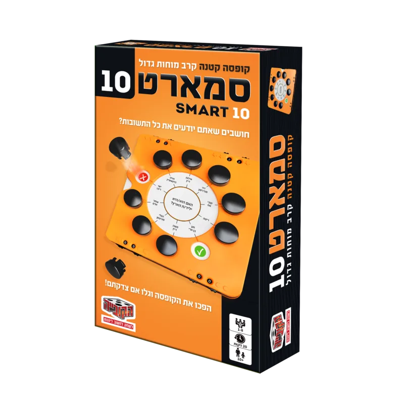 סמארט 10 משלב ידע, אסטרטגיה וגם אומץ ומזל. כדי לנצח, עליכם לבחור בחוכמה את השאלה, להשיב נכון וגם לדעת מתי לעצור. כל סיבוב מפתיע מחדש: תחשפו כרטיס ועליו שאלות ממגוון רחב של 10 נושאים - ממוזיקה, תרבות וספורט ועד מדע, היסטוריה וכלכלה. בתורכם תבחרו על איזו שאלה לענות. התשובות מסתתרות מתחת לנקודות הידע. צדקתם? תוכלו להמשיך לשאלה הבאה או לסיים את התור. טעיתם? תאבדו את כל הנקודות שצברתם!